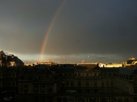 Walking around the museum was also a good idea because it was a great place to avoid the rain. I saw some other museum goers standing at a nearby window and taking a picture of something outside. So I went over to investigate and there was a rainbow cutting through the sky. Even more striking was that it appeared to end somewhere in Montmarte, the very place where my afternoon adventure began.