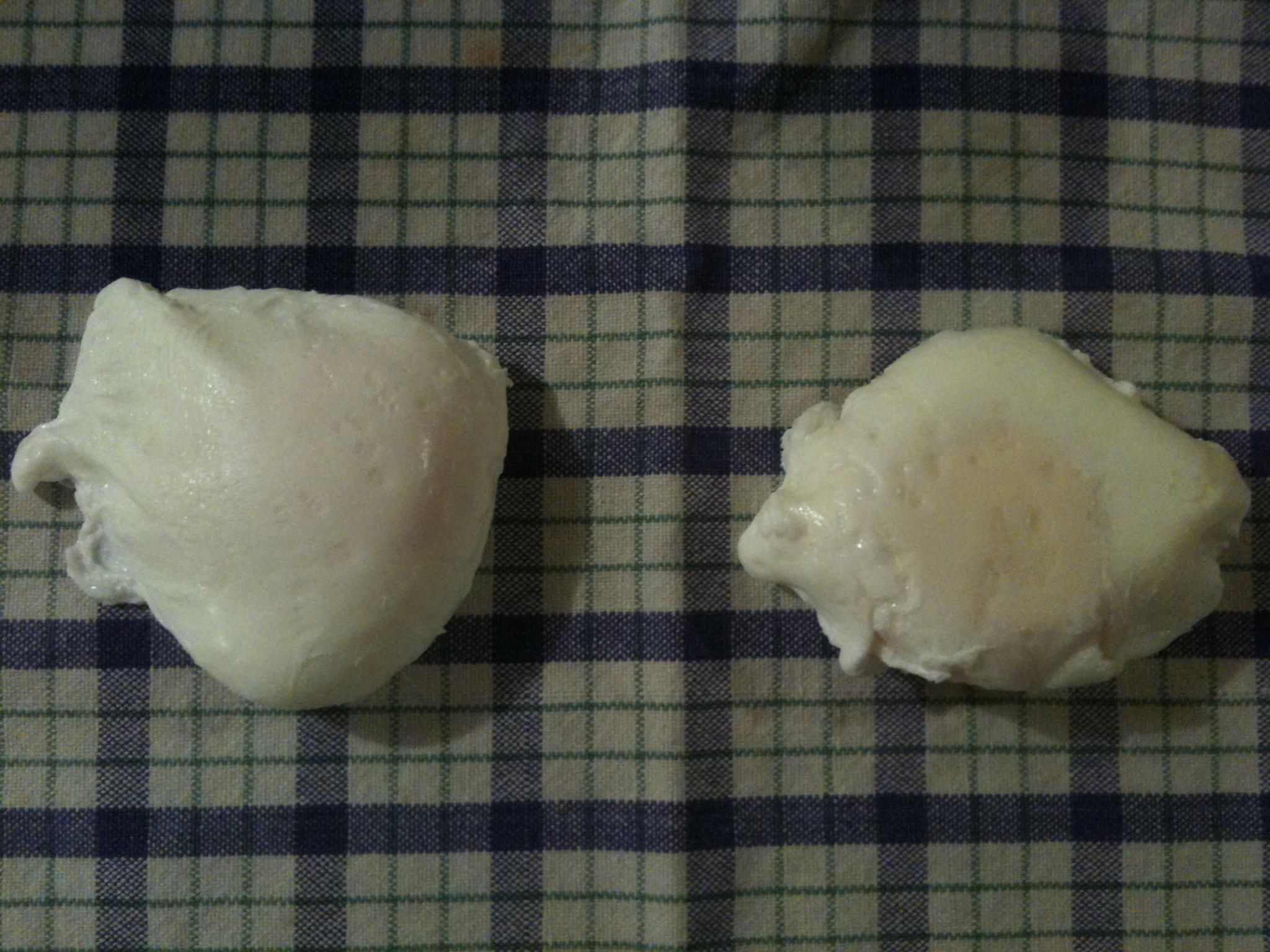 Flipping the eggs around and looking at their presentation side, the Stewart’s egg still just looks nicer. Even though the eggs started at the same weight, the Stewart’s egg looks full and plump.