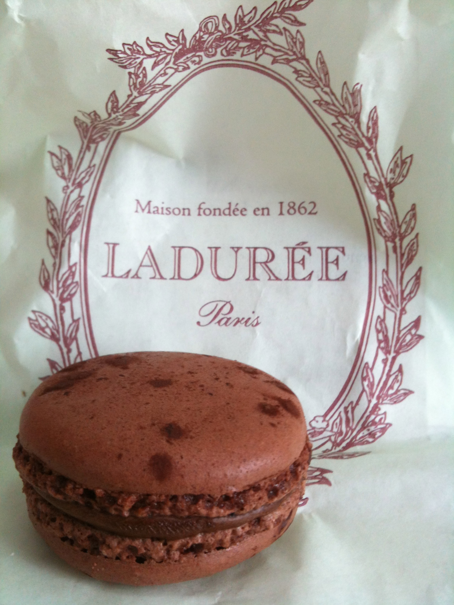 The map told me that croissant number two wasn’t far away at Pierre Herme. But somehow I walked past it, ignored the storefront numbers, and ended up walking blocks and blocks out of my way. That was the bad news. The good news is that I found myself at Laduree, and I figured I could concurrently conduct a mini tour of macarons while in the midst of this mini croissant tour.