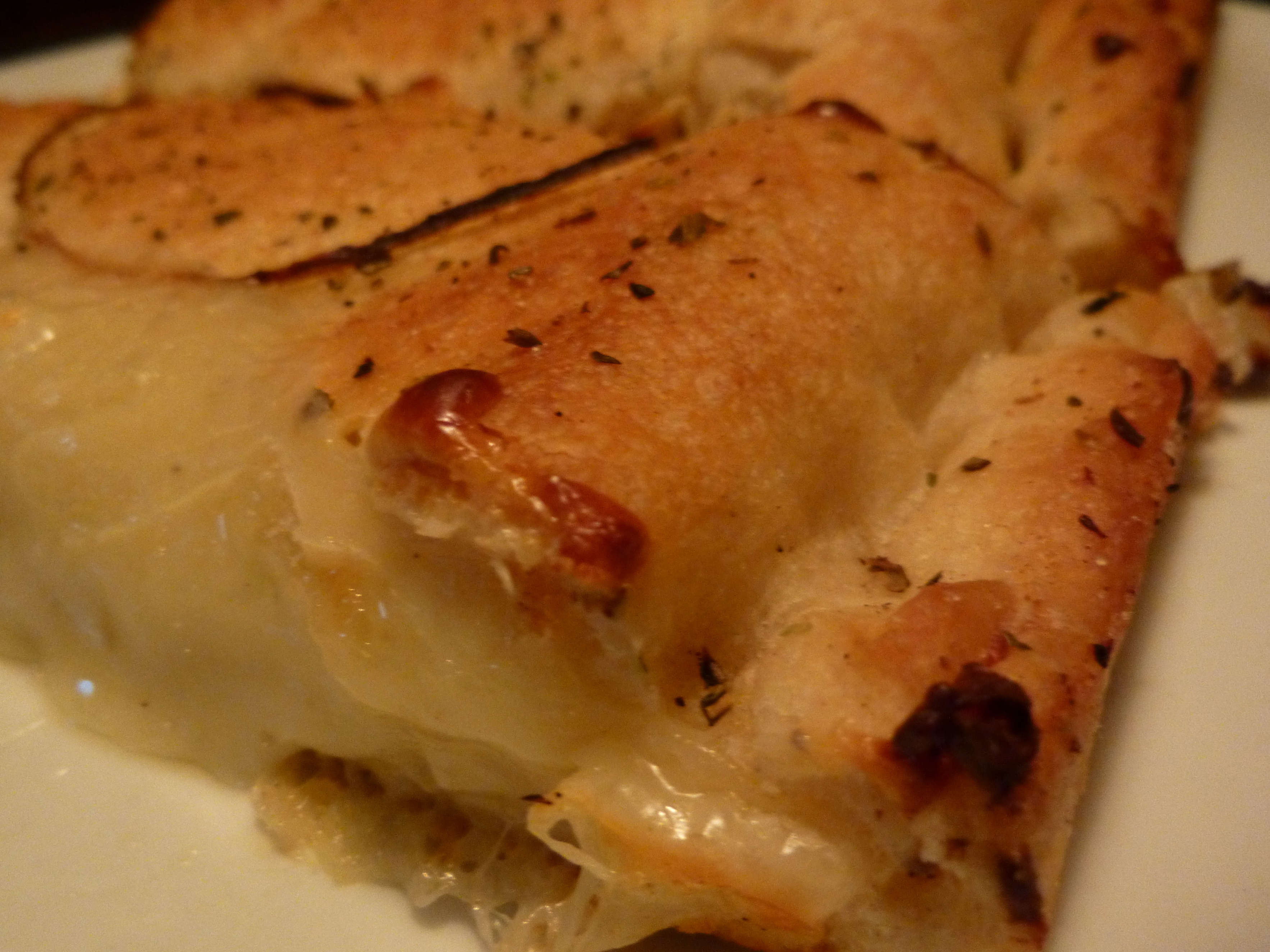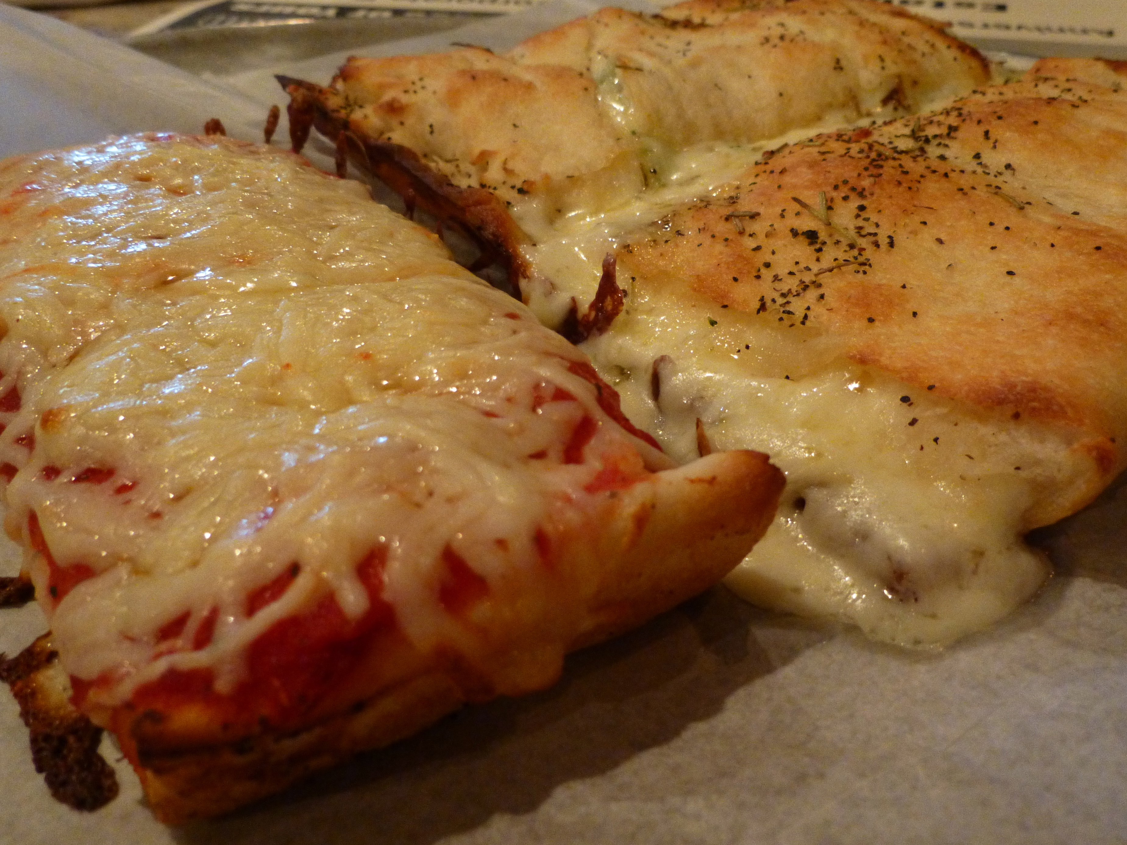 Holy rosemary. The white stuffed crust pizzas were seasoned with a sprinkle of this aromatic dried herb, and it contributed some great flavor. But perhaps even better was the presence of actual mozzarella in the cheese blend. Instead of being preternaturally melty and waxy, the cheese actually had some body and a tender toothsomeness. The white broccoli, which also contained garlic, slightly edged out the plain white with its firm bright green bites.