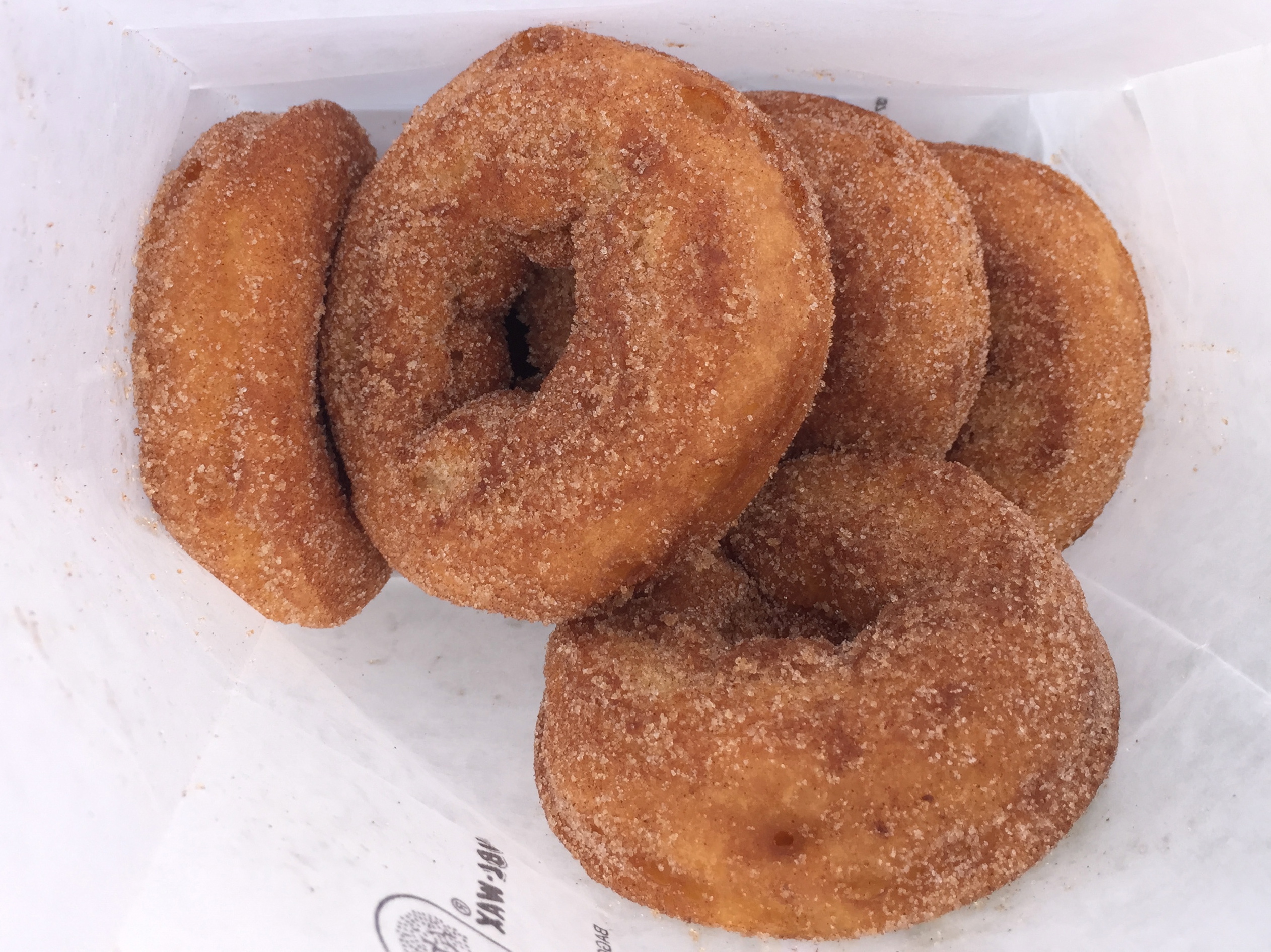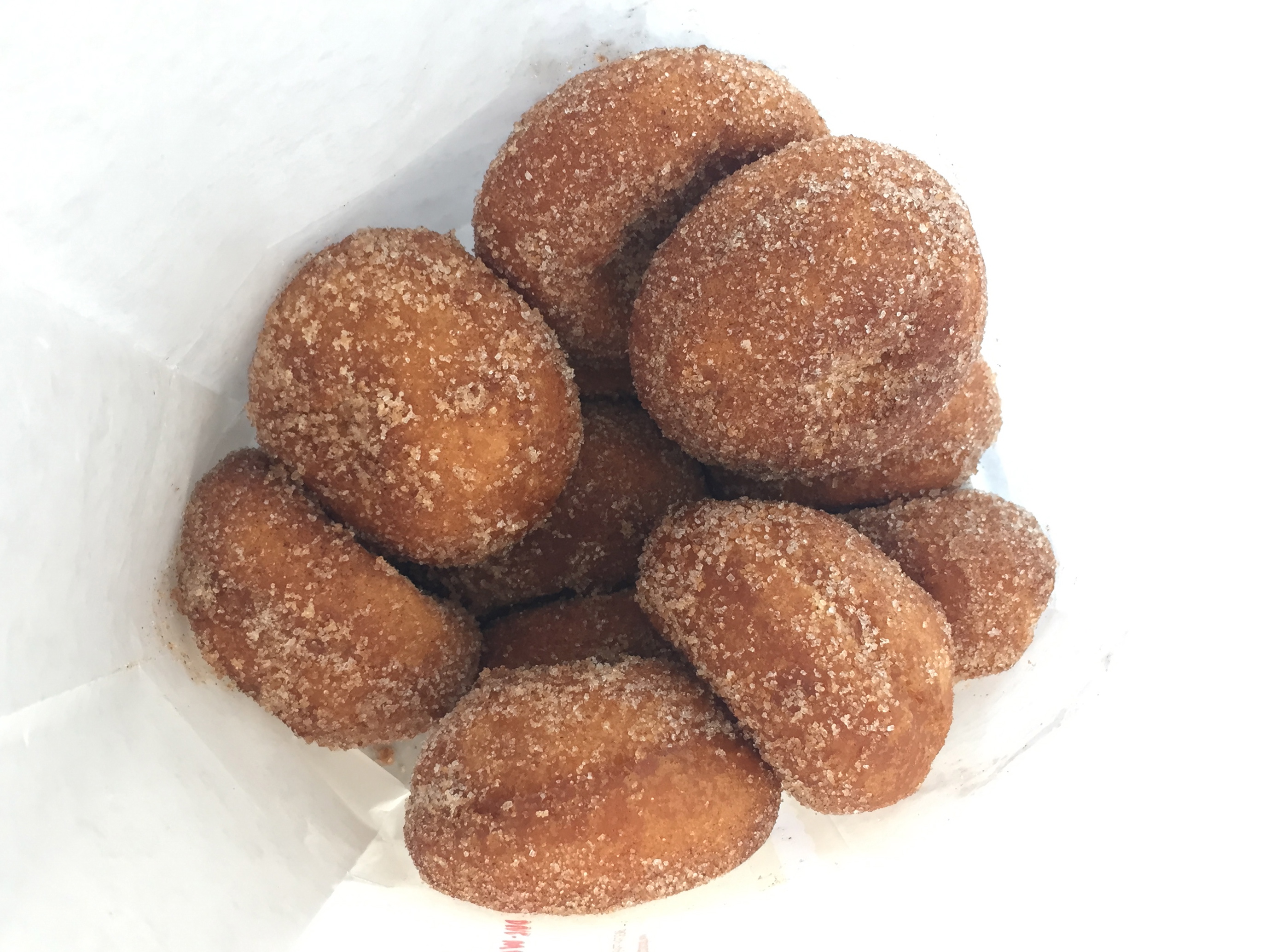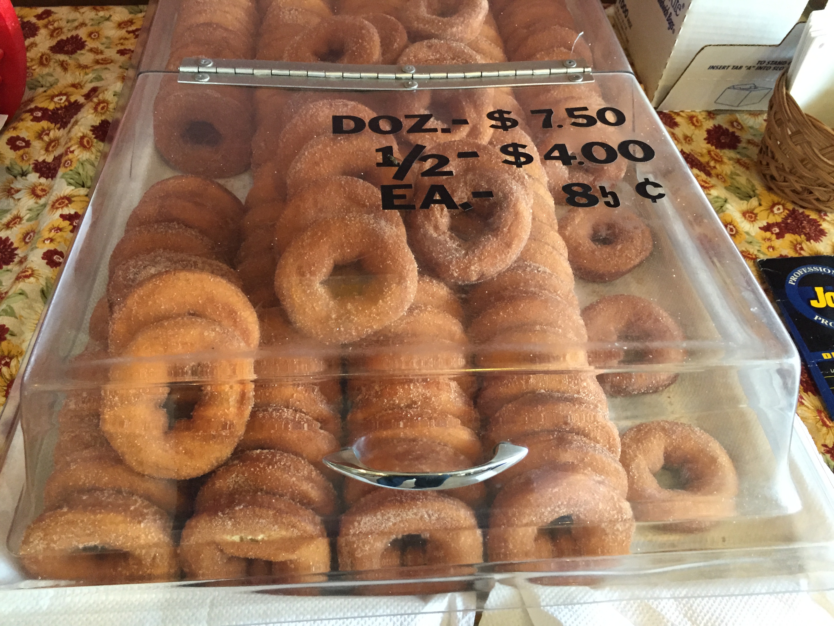 Without blinking, she ran into the back and came out with twelve steaming beauties. These apple cider donuts are smaller than all the others we had that day. Of course they are also a bit less expensive at only $6.50 a dozen. For donuts this good, that’s a shocking value.