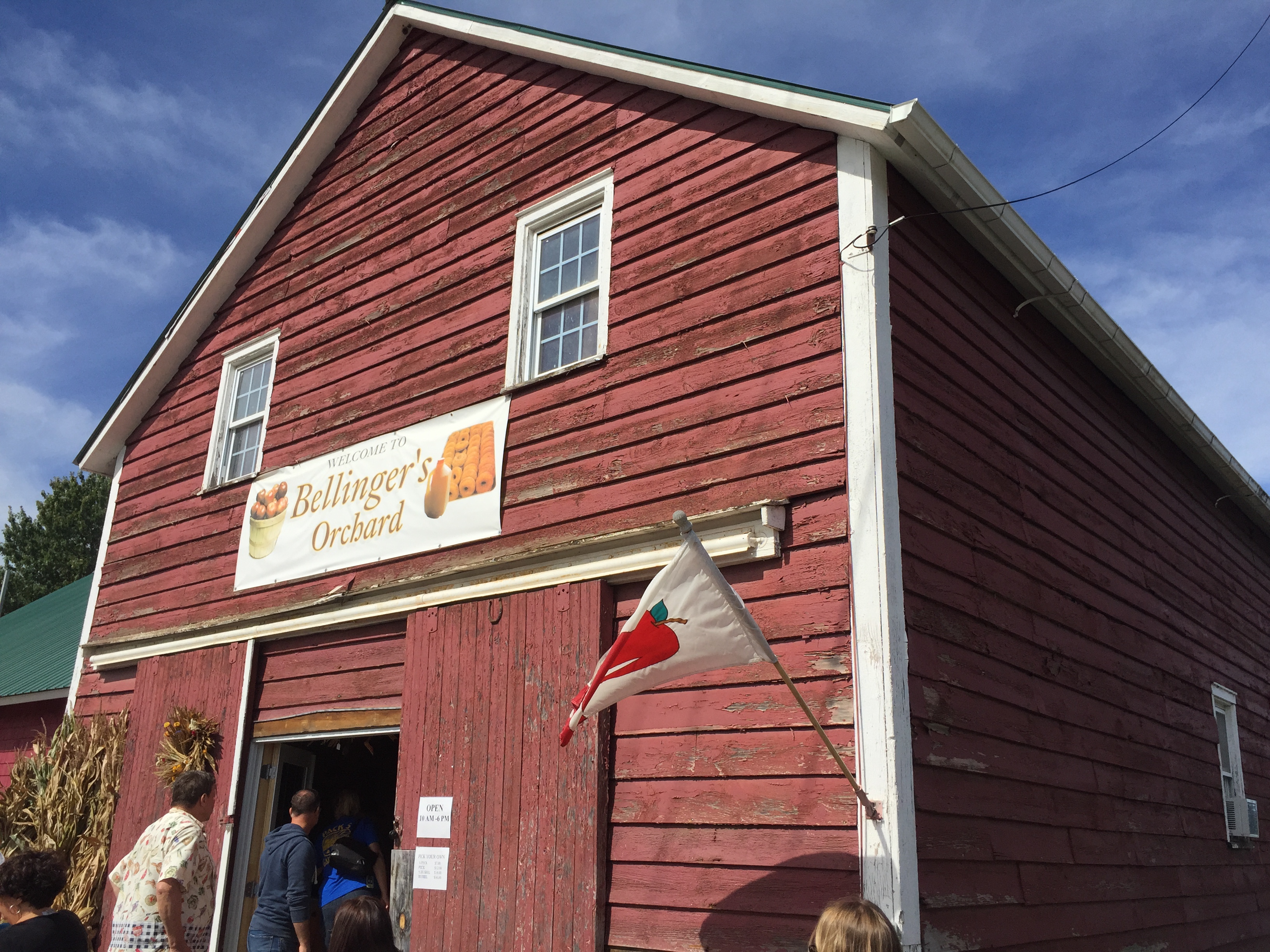 Bellinger’s Orchard in Fultonville feels like it’s out in the middle of nowhere. In fact, it seemed as if everyone visiting was simply parked on the edges of the country roads leading up to the orchard. This was the first place where the line for donuts was intense.