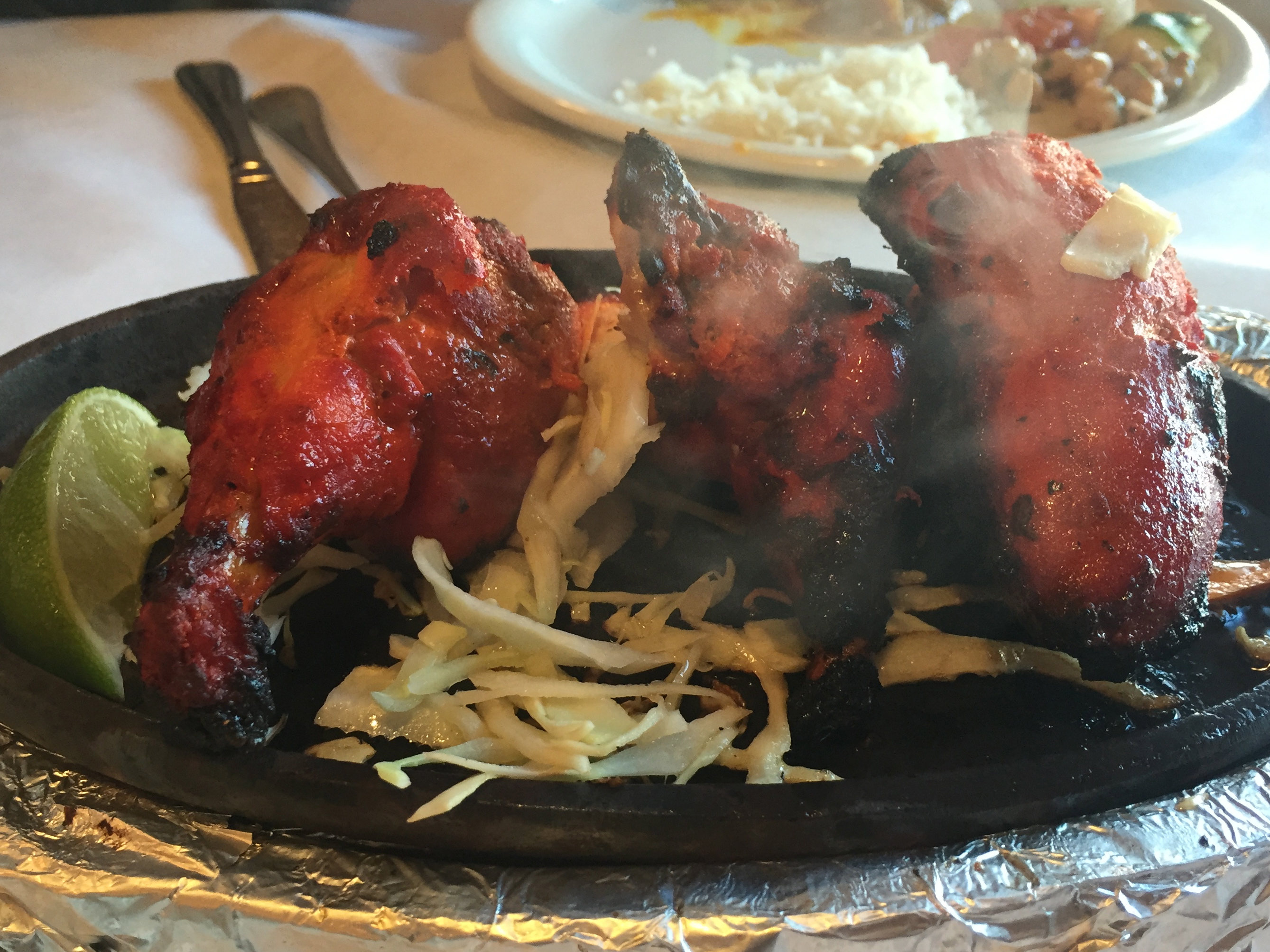 The “bonus” tandoori chicken we got served sizzling at the Nirvana lunch buffet.