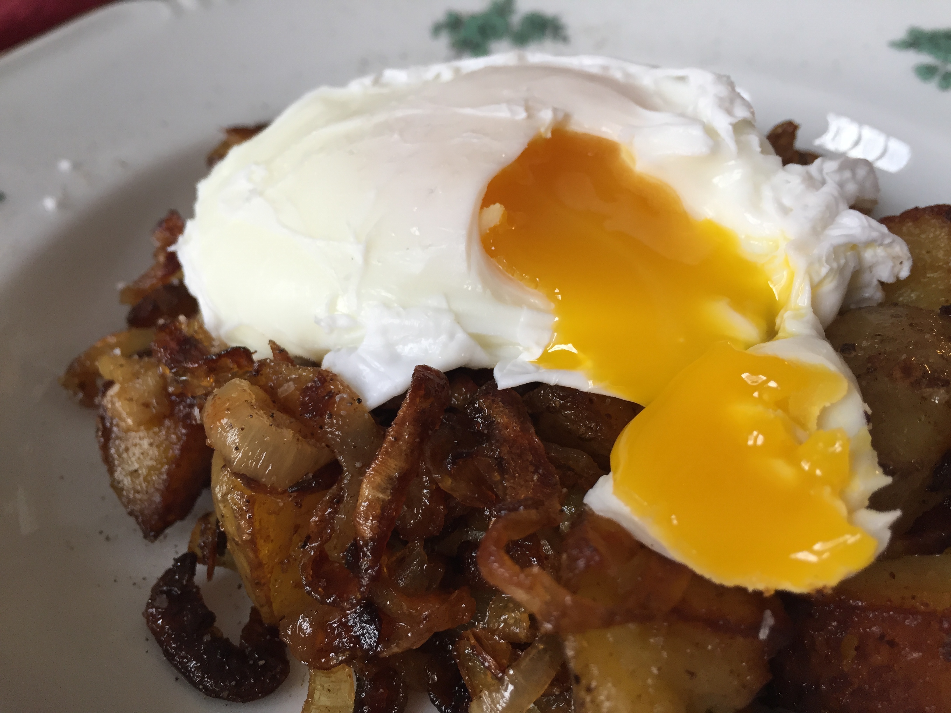These days we’re still leaning heavily on potatoes, and my leftover starch obsession has led me down the path of hash. It’s become almost a background activity on those mornings when I’m able to work from home. I dice up a boiled potato, fry it slowly in some kind of delicious reserved fat, and then toss in a chopped onion. The whole thing gets topped with a poached or fried egg.