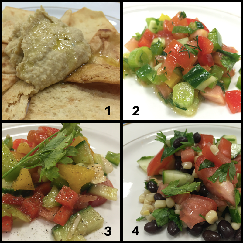 Dish 2 – Israeli salad. Beautiful. Good knife work. Balanced. Well seasoned. My top pick.