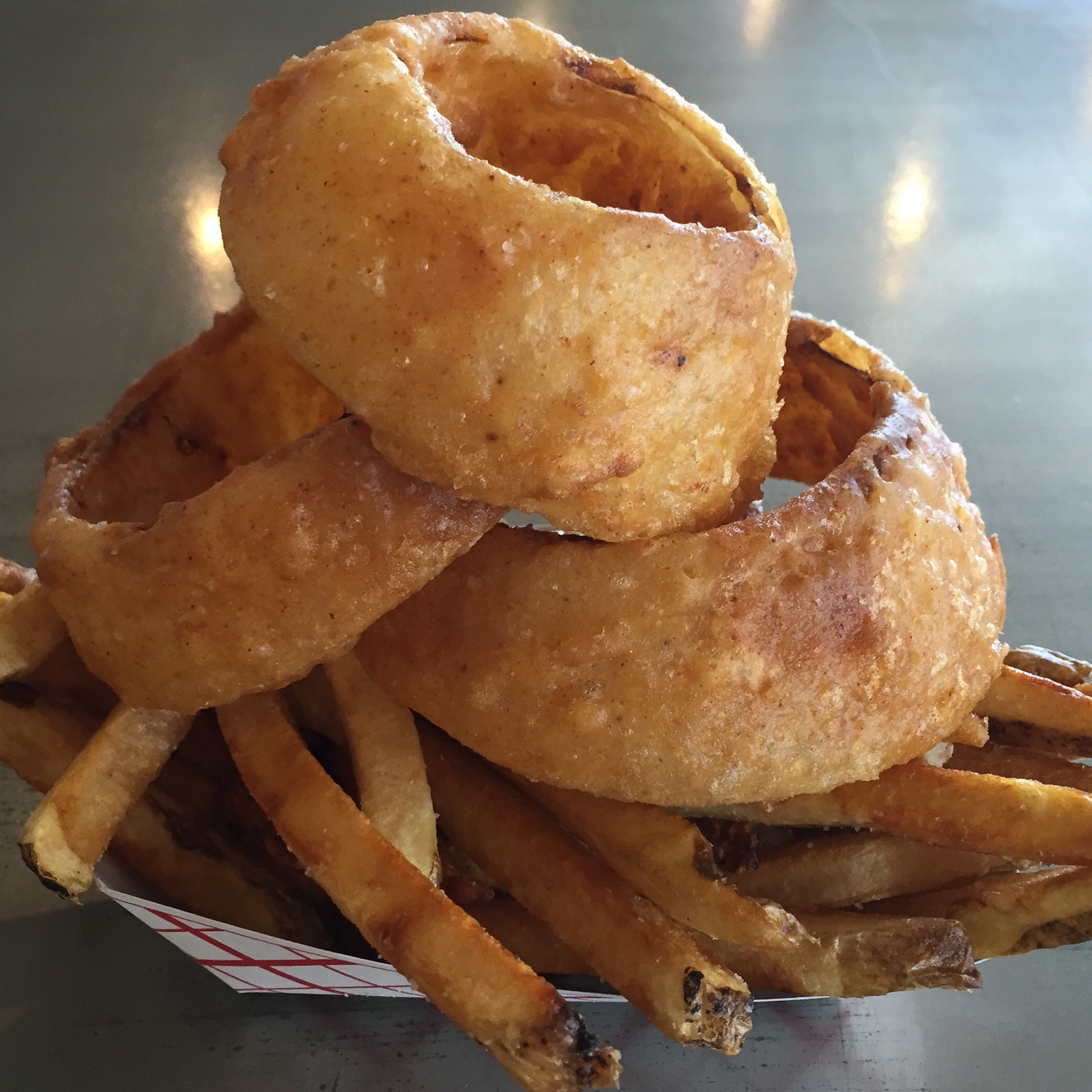And I didn’t finish this massive mound of fries and oversized onion rings. They were free at BurgerFi for the media tasting. While I didn’t like to waste the food, I could not say no, nor could I finish the whole thing.