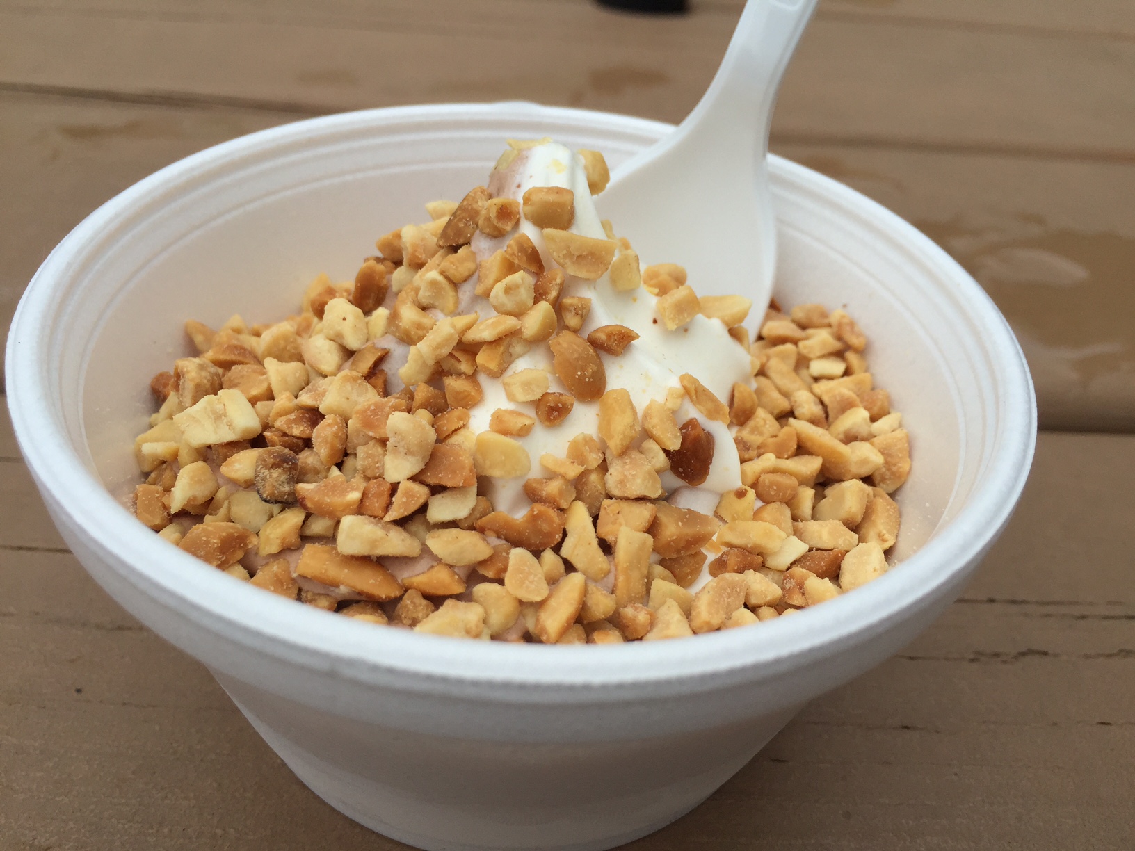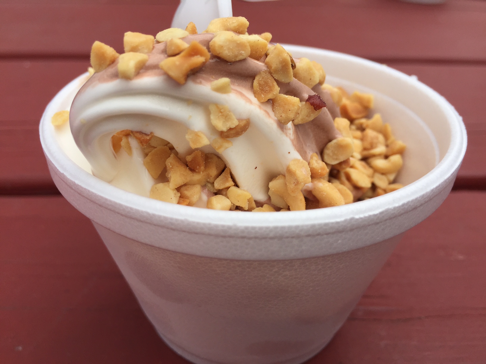 For the first year ever, I decided to go for toppings. That decision was based on some learnings after last year’s tour of Saratoga County. Because the truth of the matter is, I just don’t like soft serve very much on its own. It’s true. But still, I do these tours for science. My hope was that by adding nuts to my soft serve, I might be able to appreciate it better.