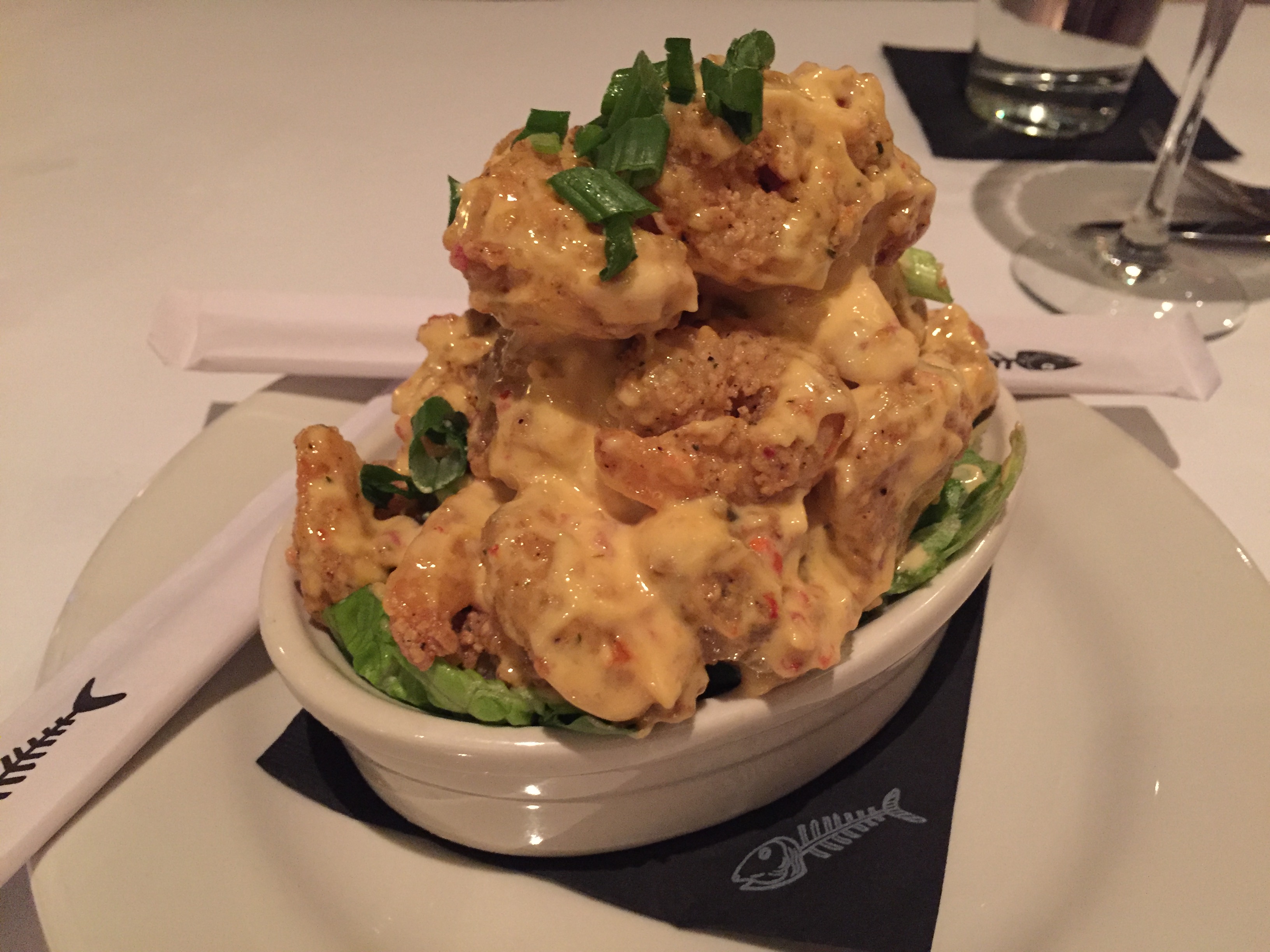 Seriously, I would return here just for these. But I would bring a friend, so we could split them. And we would sit at the bar, and maybe even share a bottle of wine. On my visit, Bonefish had a Terra d’oro chenin blanc viognier blend on special for $30. And that would go beautifully with the Bang Bang.