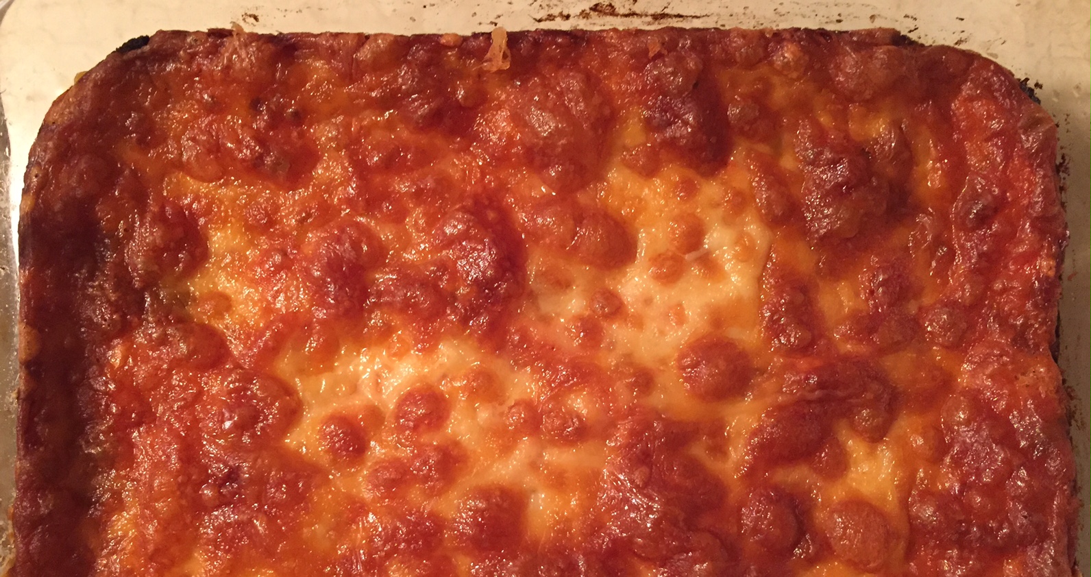 After about 48 hours in the fridge, I oiled a small baking pan, pressed the goo into an even layer, and topped it all off with some Cappiello mozzarella. Casa Visco tomato sauce is the only thing that would have made this more of a Schenectady dish.