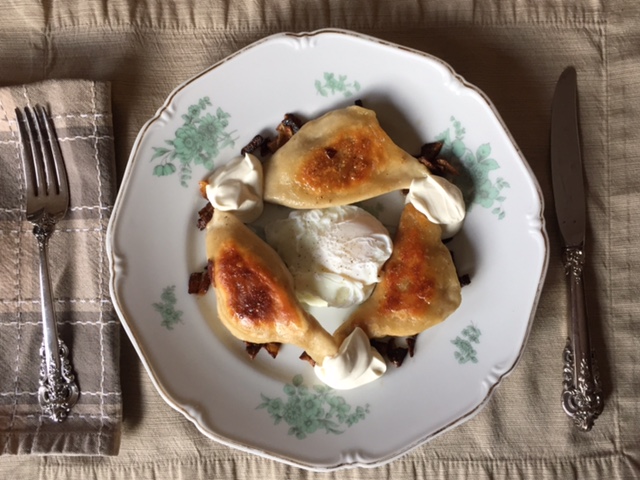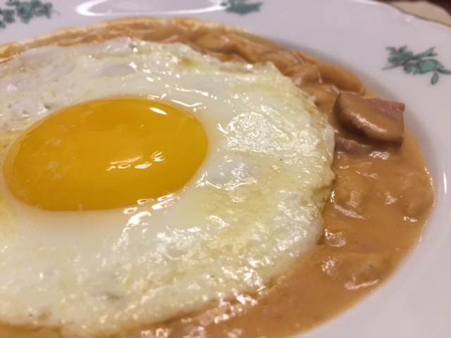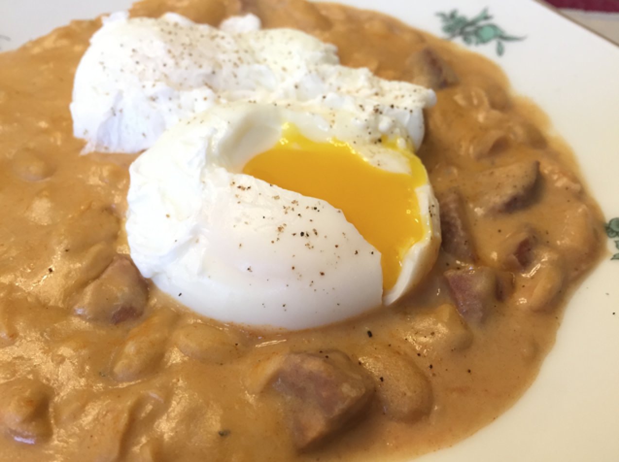 Sunny side up on buffalo white beans with Chester’s smoked blue cheese and kielbasa.