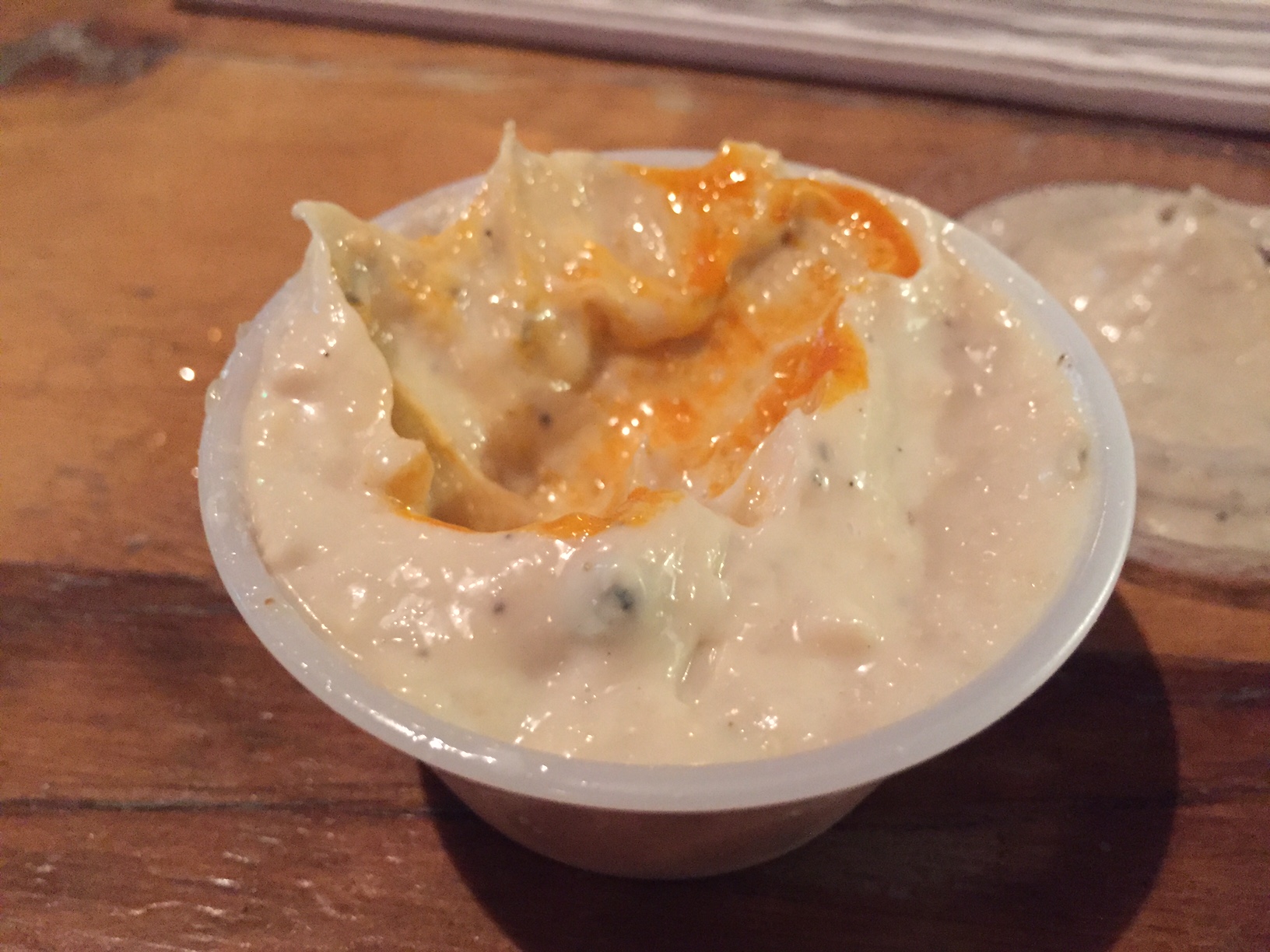 All of which puzzles me as to why folks rave about The Ruck’s ‘dip’. It’s some sort of bastardized blue cheese cut with ranch dressing that tries to appeal to both worlds but fails miserably IMO. I know folks will argue as whether or not there’s ranch in that stuff, but every time I have it, the flashing RANCH ALERT sign goes off in my head. Nope.