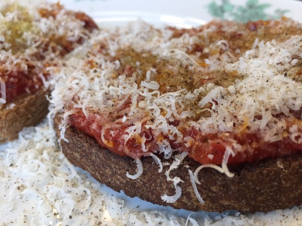 Nothing parmesan on toast at home. We talked about this earlier this month, I think. Turns out there was a picture of the stuff too. Man, I do love toast with toppings.