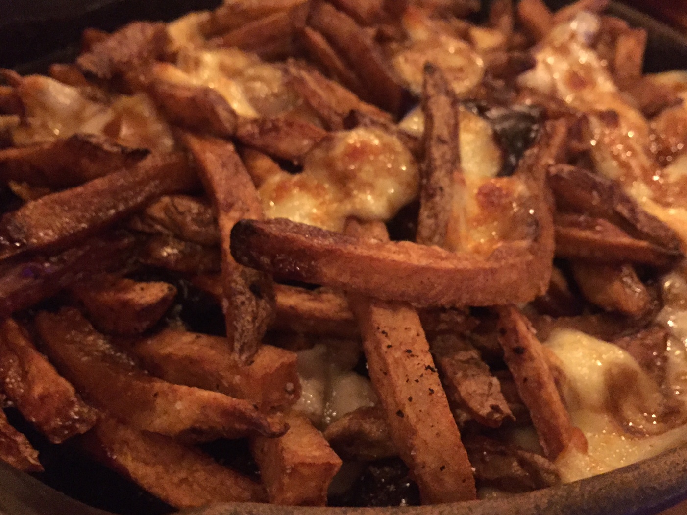 Poutine at Tipsy Moose in Latham. Anyone can tell from looking at this that it’s not poutine. But there’s nothing wrong with a huge heap of fries in a cast iron pan with melted cheese and gravy.