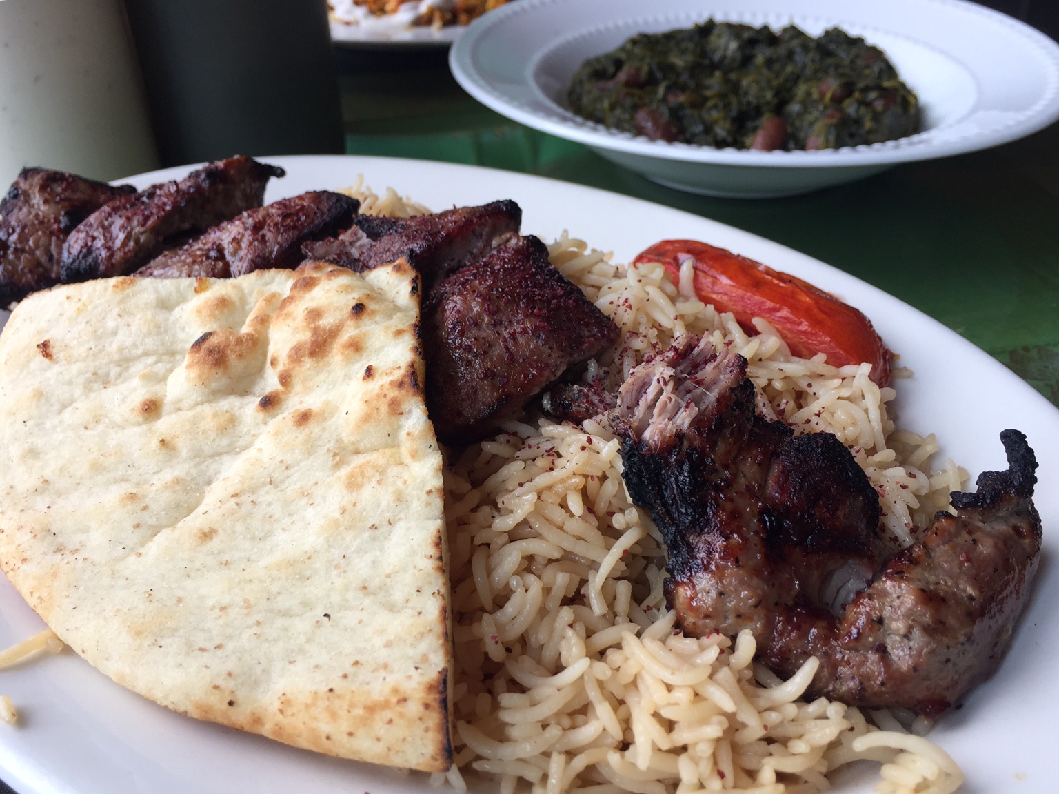 Afghan Kabob Express makes a killer lamb kabob. The spinach and bean subzi is delicious too, and helps to make sure you are getting more green in you than just the green sauce on the table.