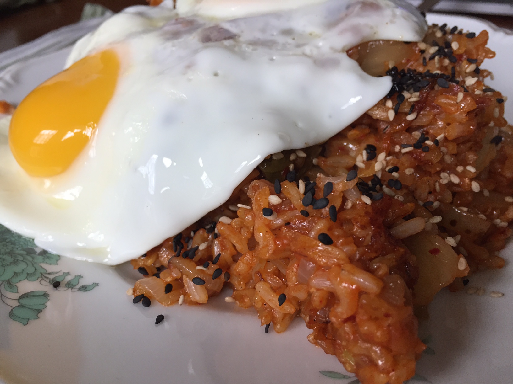 Kimchi fried rice. Yeah, I made that. It’s easy. It’s delicious. It uses up old rice. And if you can slice an onion and fry an egg, you can do it too.