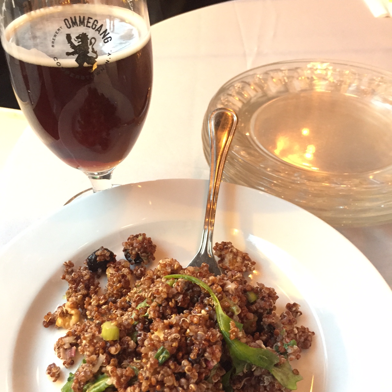 Chef Anna brought me out a taste of the quinoa salad she made for Albany Craft Beer Week. This was from the night when The Hollow joined forces with The Cheese Traveler, who brought some of his cheeses to pair with Ommegang beers. This is the brewery’s Rosetta, which is made with raspberries. And Eric brought a lovely Wensleydale to go with it (unpictured).