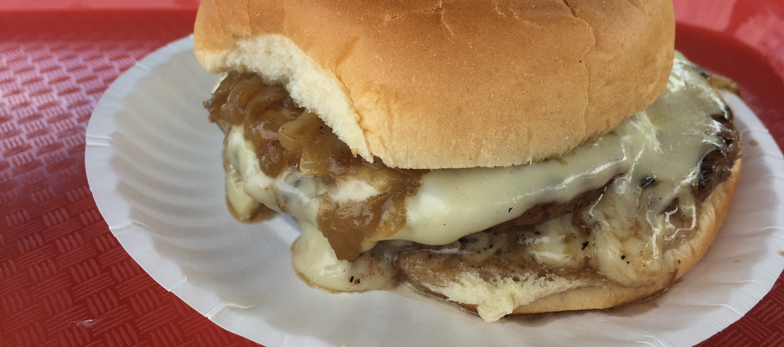 So, I thought, maybe the answer here is to just get a double cheeseburger with cole slaw. And as long as we’re tinkering around with this sandwich, how about we add fried onions. You know, because, fried onions.