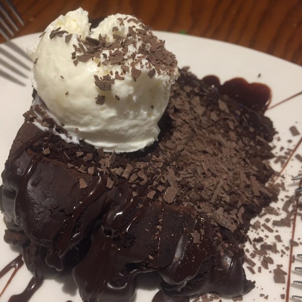 Never did I think we would finish the whole thing. But finish it we did. And then added a giant slice of chocolate cake to share for dessert. Mostly, because it comes with a raspberry sauce, and we had yet to have any fruit with our meal.