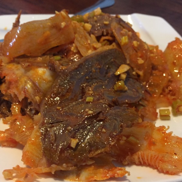 Meet Mr & Mrs. Smith. They are also a cold dish from SHU Chinese Restaurant in Guilderland. That’s a thin slice of tongue right in the middle, and it’s surrounded by slices of tripe. Do not be deterred by the names of those proteins, and do not be scared by the hue of the chili oil. This is a surprisingly accessible way to get into offal.