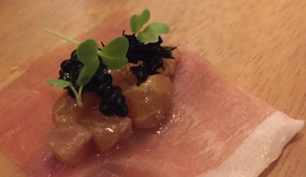 The squared off pieces of jamon serrano served as a delightful and tender taco shell for beautifully diced and seasoned pieces of kampachi. To call it a tartare does a disservice to the precise cuts. But there is a blend of precision and playfulness in Kilgore’s food, and this was a good introduction.
