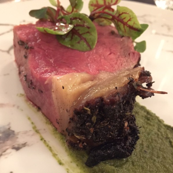 Last week, I mentioned the beef course, which was this gorgeous, thick piece of grass fed new york strip. On the plate is a puree of pickled peppercorn. The internal texture was positively silky. I need to talk more with Michael Lapi and maybe he can teach me how they did that. Because while often I find steak to be boring when going out, this was positively exciting.