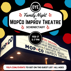After years of organizing free events for adults only, I’ve finally put together a family friendly one with the good people at MopCo. I was talking with Michael Burns and the Improv Company loves doing family shows. Kids of all ages get into it from the moody teens who get dragged by their parents, to the littlest ones who certainly aren’t getting even half of the jokes. It’s kind of amazing. And I’ve witnessed the phenomenon first hand.