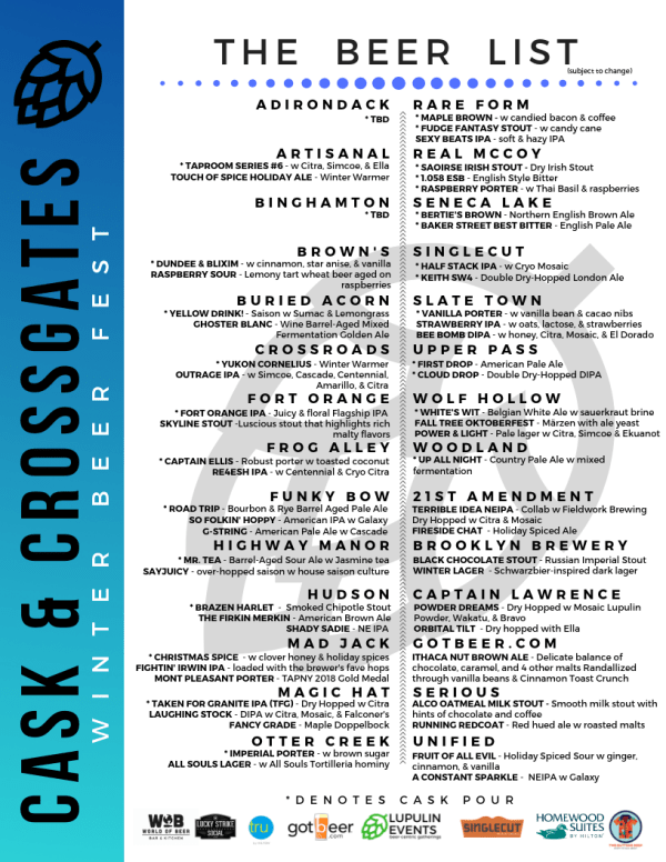 Tomorrow is December 1. We’re still several weeks away from the heart of winter. And once again it’s supposed to stay above freezing all day, without any precipitation. But one of the reasons I worked so hard yesterday is so I can play tomorrow at the Cask & Crossgrates – Winter Beer Fest.