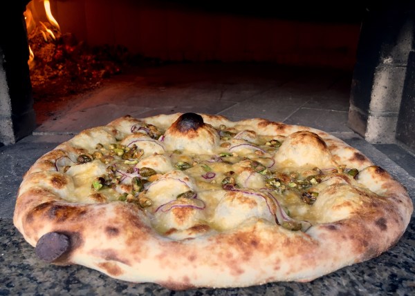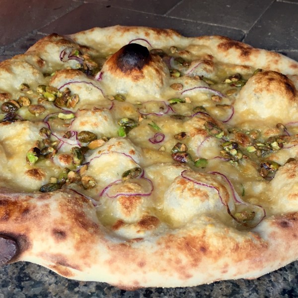 It was love at first bite. The pizza was just so different, so delicious, so complex, and yet incredibly subtle. It’s a simple combination of olive oil, parm-reg, pistachios, red onions, and rosemary.