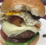 Burger #6 came from CB Craft Brewers in Honeoye Falls, a town I don’t know how to pronounce. The MacBubba Burger is a tower of excess. From the bottom to the top, it’s lettuce, tomato, burger, cheese, bacon, a fried egg, and chili. Yet amazingly the bun was not grilled in butter. My egg was more over medium than over easy, and I felt the chili was pasty. But the thing I was least happy about was the sad, mealy May tomato. I’m sure people love this over-the-top burger that echoes the All American breakfast, but it’s not my thing.