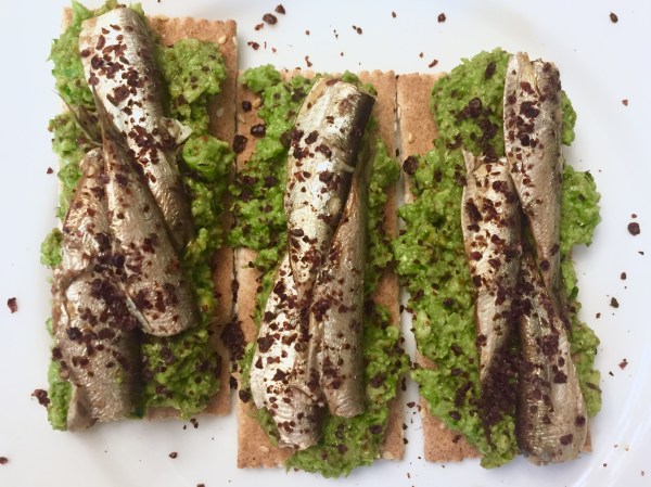 Yesterday I made perhaps the most intense heart healthy lunch to date. I pureed ramps, pistachios, mustard powder, chili flakes, and apple cider vinegar into a bright green pistou. And I spread that on ak-mak crackers. That served as a base for some brisling sardines, and the whole thing was topped with a sprinkling of sumac.